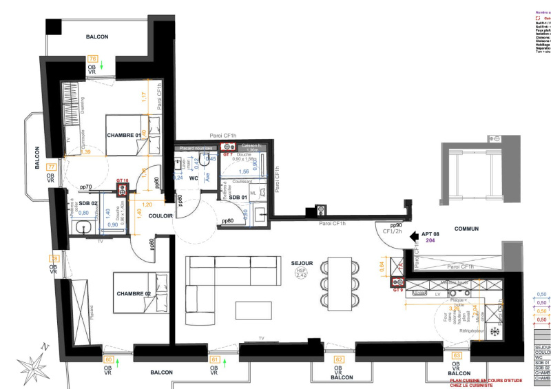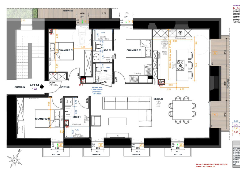 T4 avec balcons et terrasse