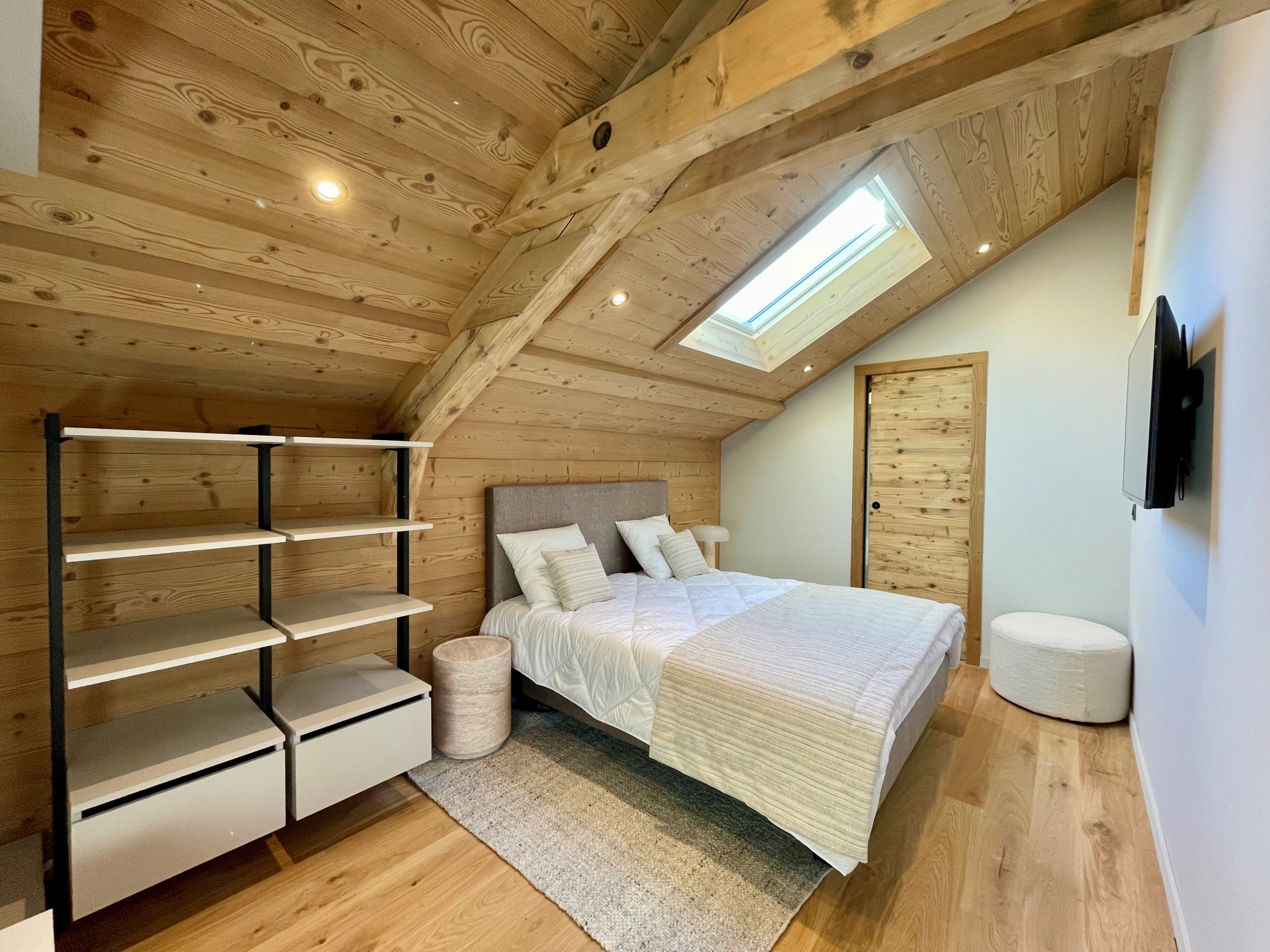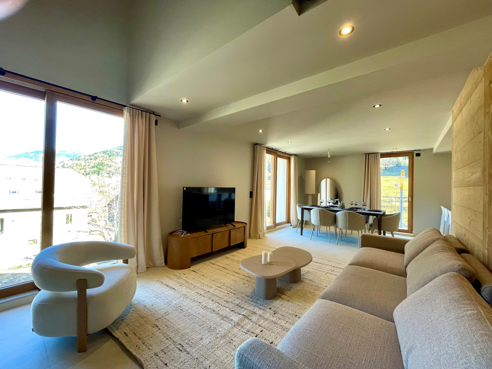 Il se compose d'une entrée avec placard, une vaste pièce de vie de 60 m² avec cuisine ouverte tout équipée et l'accès à la grande terrasse exposée Nord/Ouest pour admirer la vue sur les montagnes et aux 4 balcons exposés Sud, 3 chambres avec placards, une salle de douches avec WC et une buanderie complètent ce lot.